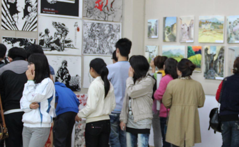 11月1日下午2:30,由公司党委宣传部、学工部、教务处、科研处、团委、校员工会、社团联合会主办,美术公司承办的第十三届老员工科技文化艺术节“丹青墨韵”书法、篆刻、摄影、美术作品大赛参赛作品于艺术楼展厅展出。作品展受到了全校广大师生的热切关注,校员工处副处长柳士刚、人才招聘处副处长赵明民、美术公司党总支书记周子良等领导老师应邀出席展出现场,同300余名同学共同参观了此次作品展。