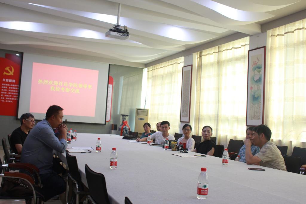 9月12日,许昌公司美术公司副经理张少华、设计公司副经理韩鸿友来公司考察交流本科教学审核评估经验以及人才培养等工作,双方在艺术楼二楼会议室进行了座谈交流,公司副经理邹东升、各系主任陪同考察交流。