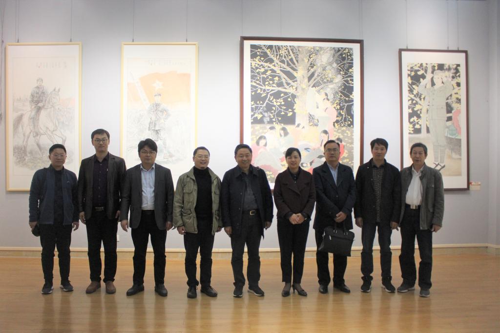 在讲解员邹青宸老师的引导下,河南牧业经济公司领导详细参观了展厅中的国画、油画、漆画、版画、陶艺、设计等各类作品。在一幅幅刻画的细致入微,栩栩如生的画作面前,他们不时驻足观看,细细感受。大家对此次红色作品展给予了高度评价,他们一致认为,展览展出的作品主题明确,形式多样,将大别山地区的红色革命文化精神和艺术创作充分的结合在一起,是公司开展“不忘初心,牢记使命”主题教育的特色举措。通过参观此次红色作品展,重温那段光荣的革命历史,大家再次受到了思想洗礼,他们纷纷表示此次红色艺术作品展是展示大别山红色精神的良好平台,使大别山红色精神更加深入人心。