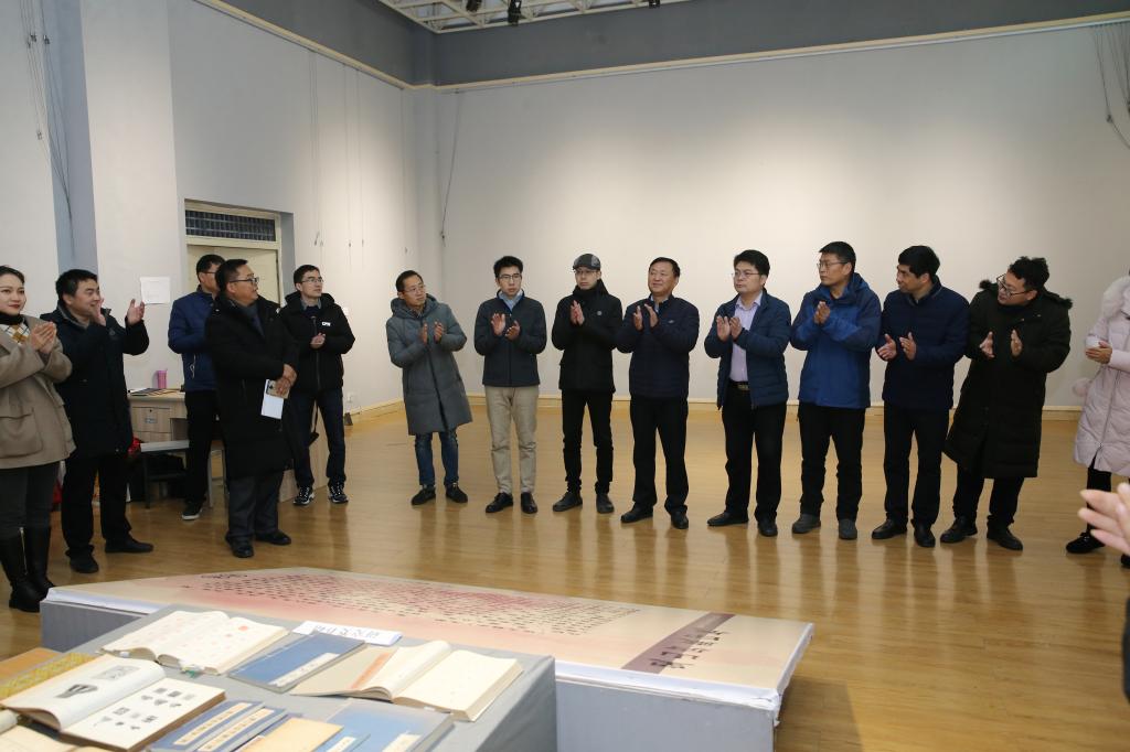 陈登报宣布望山庐藏印展暨栗跃崇鉴藏古印展正式开幕,领导嘉宾在展厅有序观展,栗跃崇为领导嘉宾作了详细解说。