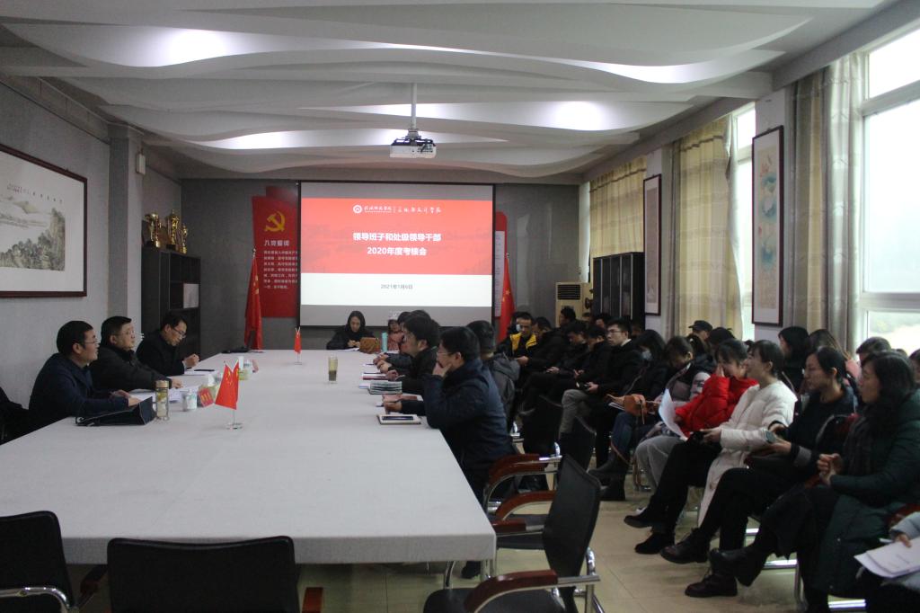 1月6日下午,公司在二楼会议室召开处级领导班子和处级领导干部2020年度考核工作会。公司第二考核组组长曾伏虎及考核组成员胡思辉、周贤亮出席会议,公司处级领导班子成员与全体教职工参加会议。会议由公司党委书记朱四倍主持。