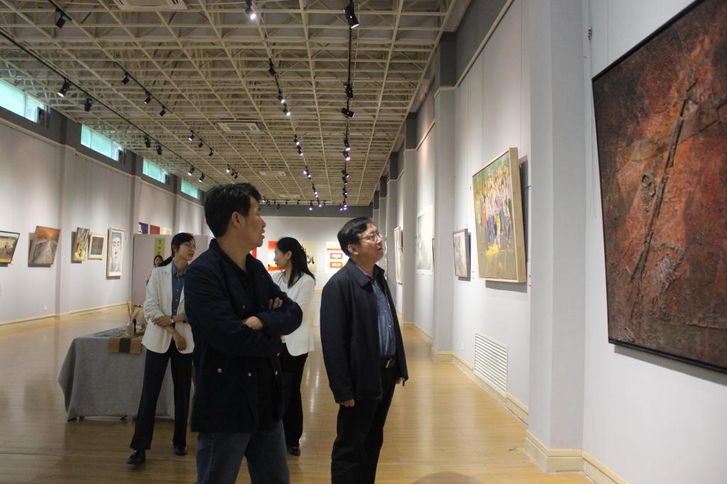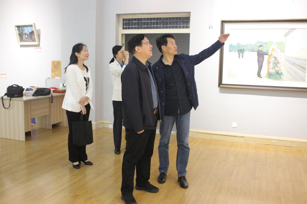5月19日上午,信阳市委宣传部常务副部长钱长琨来公司参观指导庆祝建党100周年教师作品展,公司副经理邹东升、张伟、展览指导教师刘焱陪同观展。