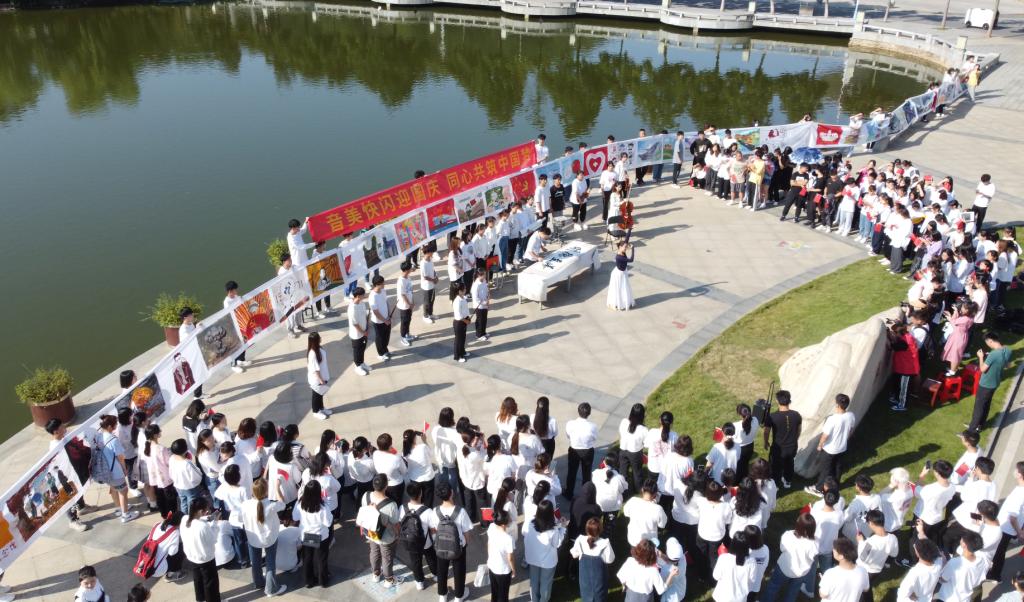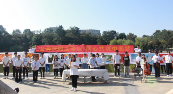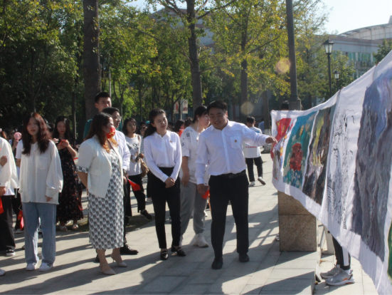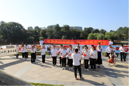 10月1日,best365英国体育在线和音乐与舞蹈公司于图书馆半亩塘、艺术楼前举办了“音美快闪迎国庆,同心共筑中国梦”活动。校团委副书记常青、美术与设计公司党委副书记周刚、音乐与舞蹈公司党委副书记雷玲及best365英国体育在线、音乐与舞蹈公司师全体新生共同参与了此次活动。