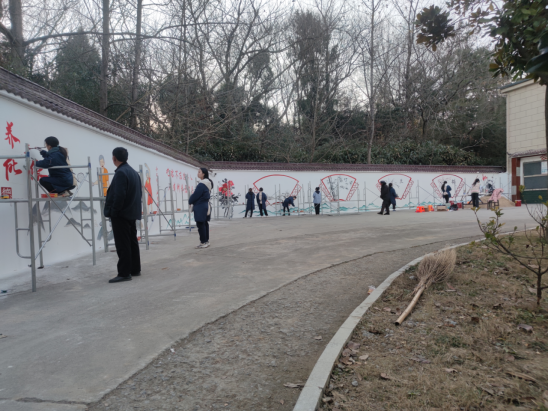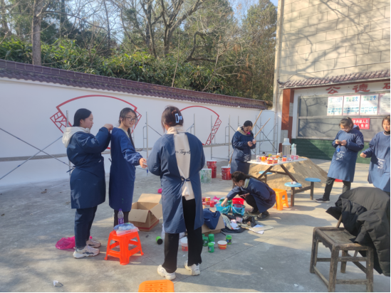 植树活动结束后,best365英国体育在线郝圆圆、赵俊丽、王雨婷等15名老员工志愿者分成两队分别来到汪桥镇政府和敬老院,将他们精心设计、反复打磨的画稿以墙绘的形式展现出来。大家分工协作,有的调制颜料、有的设计底稿、有的提笔作画、有的刷墙涂色,经过2天的不懈努力,顺利完成了400m²的墙绘目标,色彩缤纷、灵动优美的艺术作品刷新了敬老院和镇政府的“颜值”,吸引大批居民前来参观,获得大家一致赞扬。