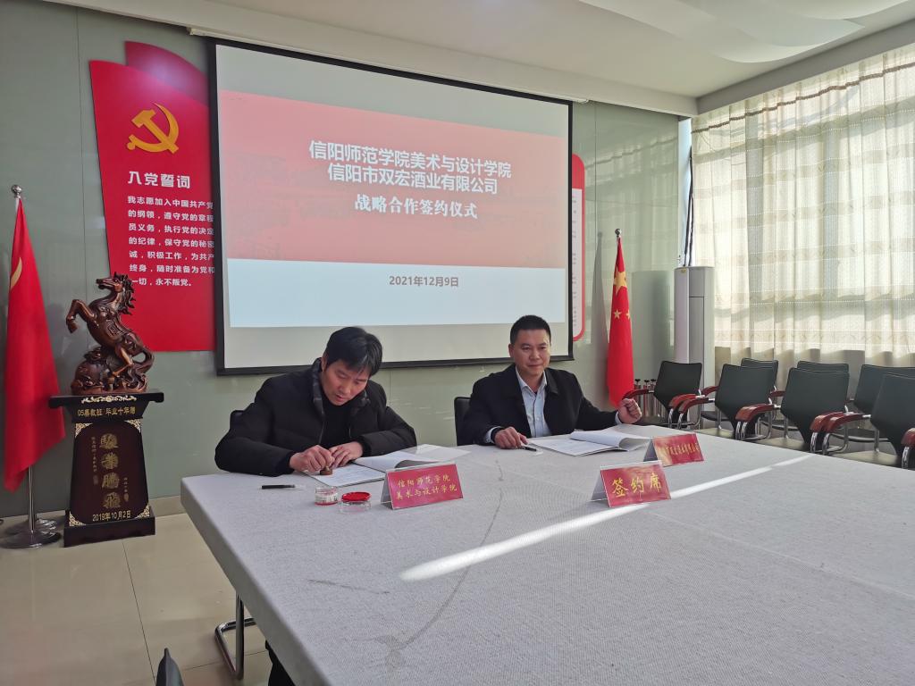 12月10日,副董事长陈登报出席公司与信阳双宏酒业有限公司的合作签约仪式。美术与设计公司党政领导班子、教师代表,与信阳双宏酒业有限公司董事长潘健等相关企业负责人参加签约仪式。仪式由副经理董建义主持。
