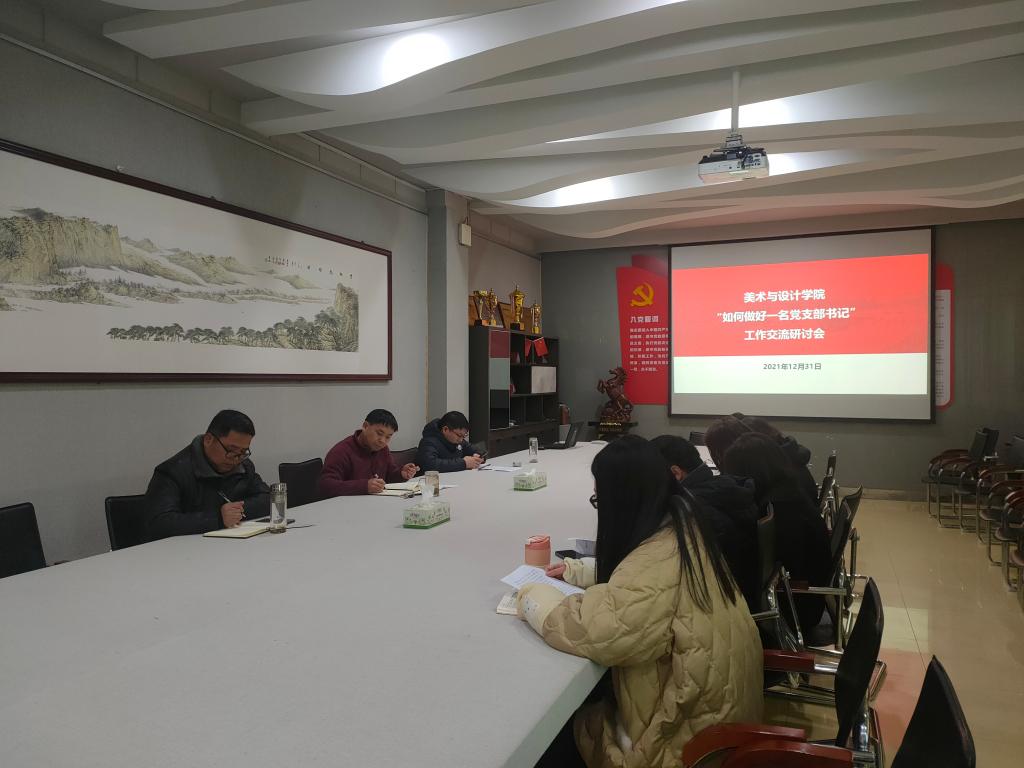 为提高基层支部书记履职能力,夯实基层党建工作基础,全面提升高校基层党建工作水平。12月31日,best365英国体育在线在204会议室举办“如何做好一名党支部书记”工作交流研讨会。美术与设计公司党委书记兰洋,党委副书记周刚,副经理、兼职党委副书记张伟和全体党支部书记参加会议。