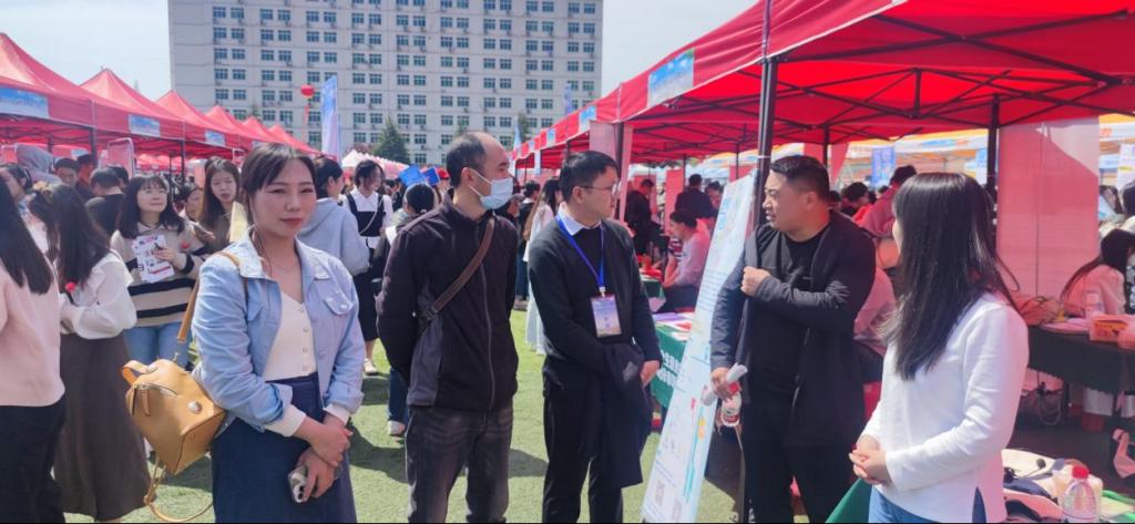 为贯彻落实党中央、国务院关于“稳就业”、“保就业”决策部署,搭建用人单位和毕业生双向选择交流平台,更好地满足用人单位的人才需求,4月8日上午,“河南省毕业生就业市场豫南分市场暨信阳师范公司2023届毕业生春季双向选择洽谈会”在公司西运动场隆重举行,公司2023届全体毕业生积极踊跃参加。公司党委书记兰洋,副书记周刚,副经理张伟、张江波,经理助理甘露,辅导员郑波到现场指导就业工作。
