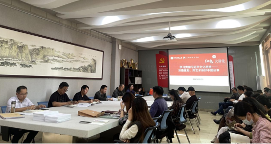 教职员工集中学。10月24日下午,best365英国体育在线于艺术楼204会议室召开教职工政治理论学习会,会上,党委书记兰洋为大家作了题为《学习贯彻习近平文化思想——浓墨重彩,用艺术讲好中国故事》的报告。兰洋号召大家,作为新时代的艺术工作者,要坚持党的领导,维护国家文化安全;坚持文化自信,推动中华民族伟大复兴;坚持交流互鉴,建设中国特色社会主义文化,积极创作出影响深远、经得起历史检验的好作品,为文化强国的建设贡献属于自己的力量。