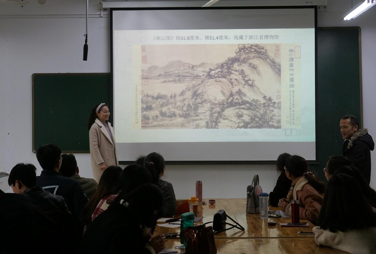卢敏首先对本次活动目的及安排进行简介,并对2017年新入职教师许东兵博士、邹青宸老师的个人情况分别介绍。在2017年新入职教师教学汇报活动环节,许东兵博士以《硕士论文的选题及写作规范》为题,娓娓阐明硕士论文写作的两种基本形式、论文选题、研究方案设计、写作规范等问题。邹青宸老师以《富春山居图赏析》为题,巧妙结合自身对作品的实地考察资料,对画家的思想情感与境界、作品的艺术语言特色进行了深度解读。讲课期间,现场员工与两位老师积极互动,气氛活跃。课后,同行专家及员工对此次课堂教学汇报进行了不记名打分及现场听课评议。“专题沙龙”活动环节,许东兵博士与员工围绕硕士论文写作中的困惑展开交流,邹青宸老师对员工在山水画赏析与临摹中遇到的困难进行疏导。最后,卢敏老师对两位教师课堂教学和专题沙龙中的亮点和不足进行点评总结,并提出建议与期待。