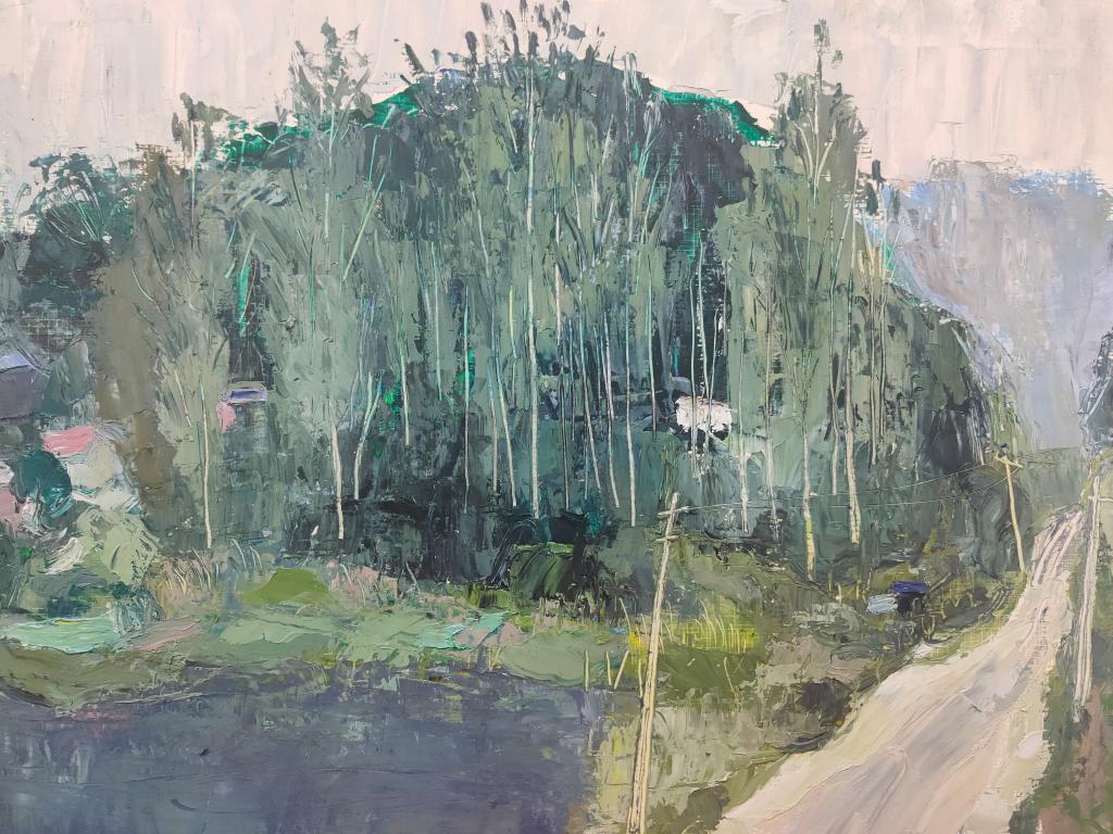 叶长斌《信阳第一个党支部——柳林小学旧址》油画50x80cm 2019
