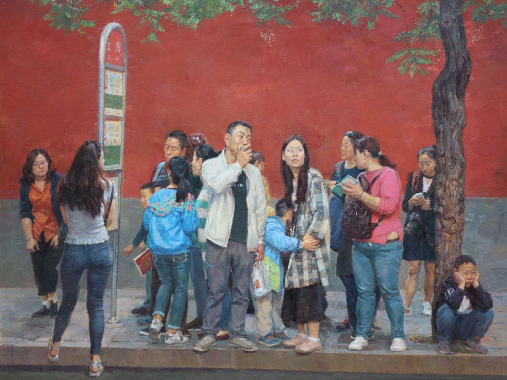 张江波《老城候车》200#150cm2019年