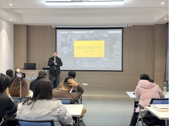 下午,李意淳教授带来《艺术视野与方法》讲座。他以自己的“平选生态系列”和“西行风景系列”作品为例,阐述绘画应兼具写实性、知性因素与技术符号,强调自然与人文景观对绘画创作的重要性,为师生们带来了一场艺术与思想的盛宴。