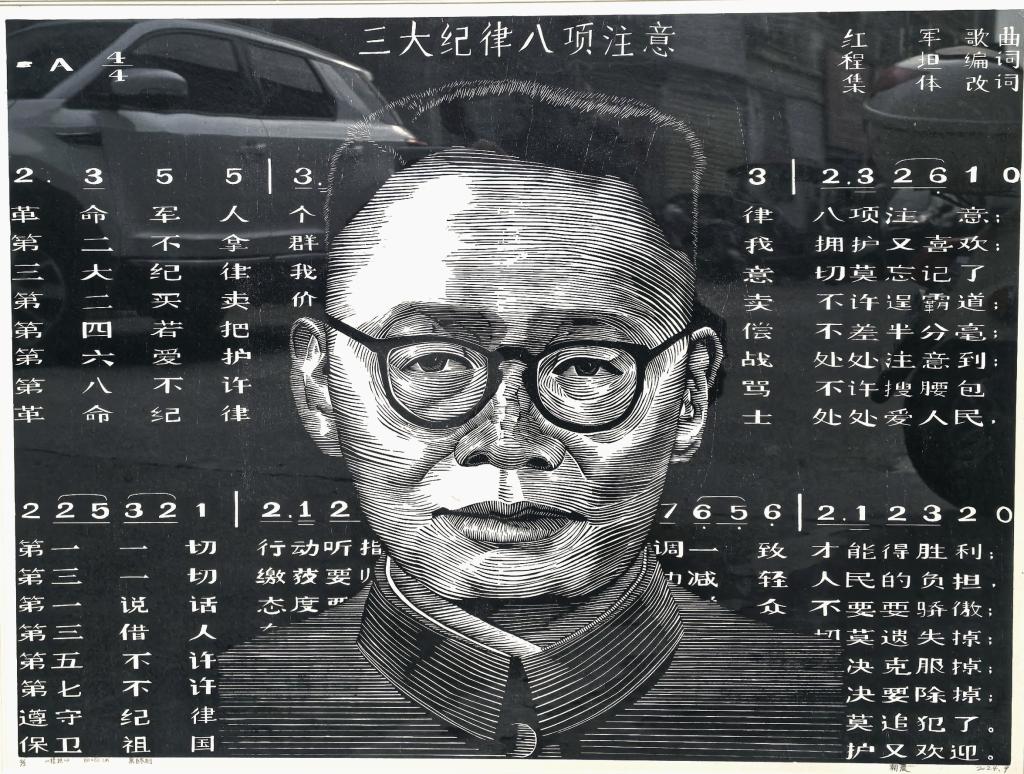 朝晨《“五一”口号之忆》版画 60x35cm 2018